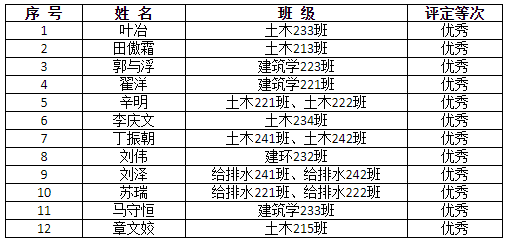 考核优秀12人,名单为: